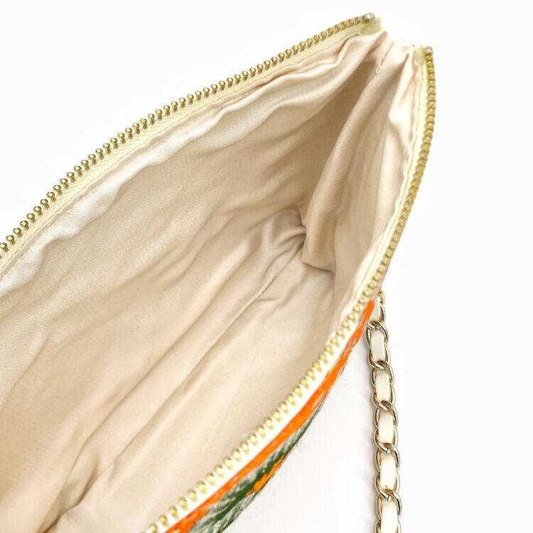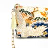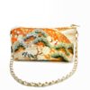 Toanoi Kimono Short Chain Shoulder Bag. Handmade from authentic obi fabric, each purse showcases the meticulous craftsmanship of skilled artisans, making every piece entirely unique. The obi silk inner lining brings out its luxurious feel, with a little pocket sewn in. While the size is perfect for carrying your bits and bobs, it’s also an incredibly comfortable length. The gold colored zip is very secure, and the beautiful, detachable chain strap offers versatility. Finally, a matching tassel completes the design with a touch of charm, leaving this bag as a beautiful addition to any wardrobe.