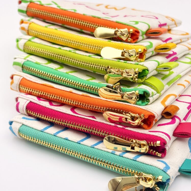 Original print canvas mini pouch with Thai numbers. A compact, colourful souvenir zipper pouch handmade in Bangkok by Toanoi. 12 colours, ฿300. Free shipping in Thailand.