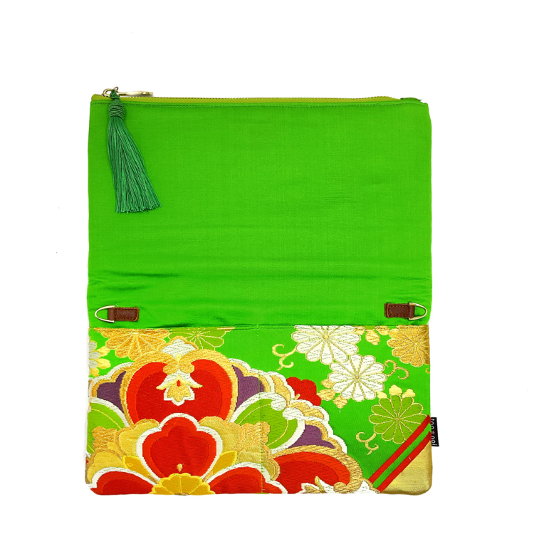 กระเป๋าคลัทช์คิโมโนจากโตอาน้อย ที่ถูกสร้างขึ้นโดยใช้ผ้าโอบิ แต่ละกระเป๋ามีความเป็นเอกลักษณ์ของตัวเองและยังคงความเป็นรูปแบบของแต่ละชิ้นในผ้าอิโบ เนื่องจากการผสมระหว่างวัสดุคุณภาพสูงและการออกแบบที่ยอดเยี่ยม กระเป๋าคลัทช์นี้ไม่เพียงแค่เป็นเครื่องประดับแฟชั่นเท่านั้น แต่ยังเป็นเพื่อนที่อยู่กับคุณในระยะยาว